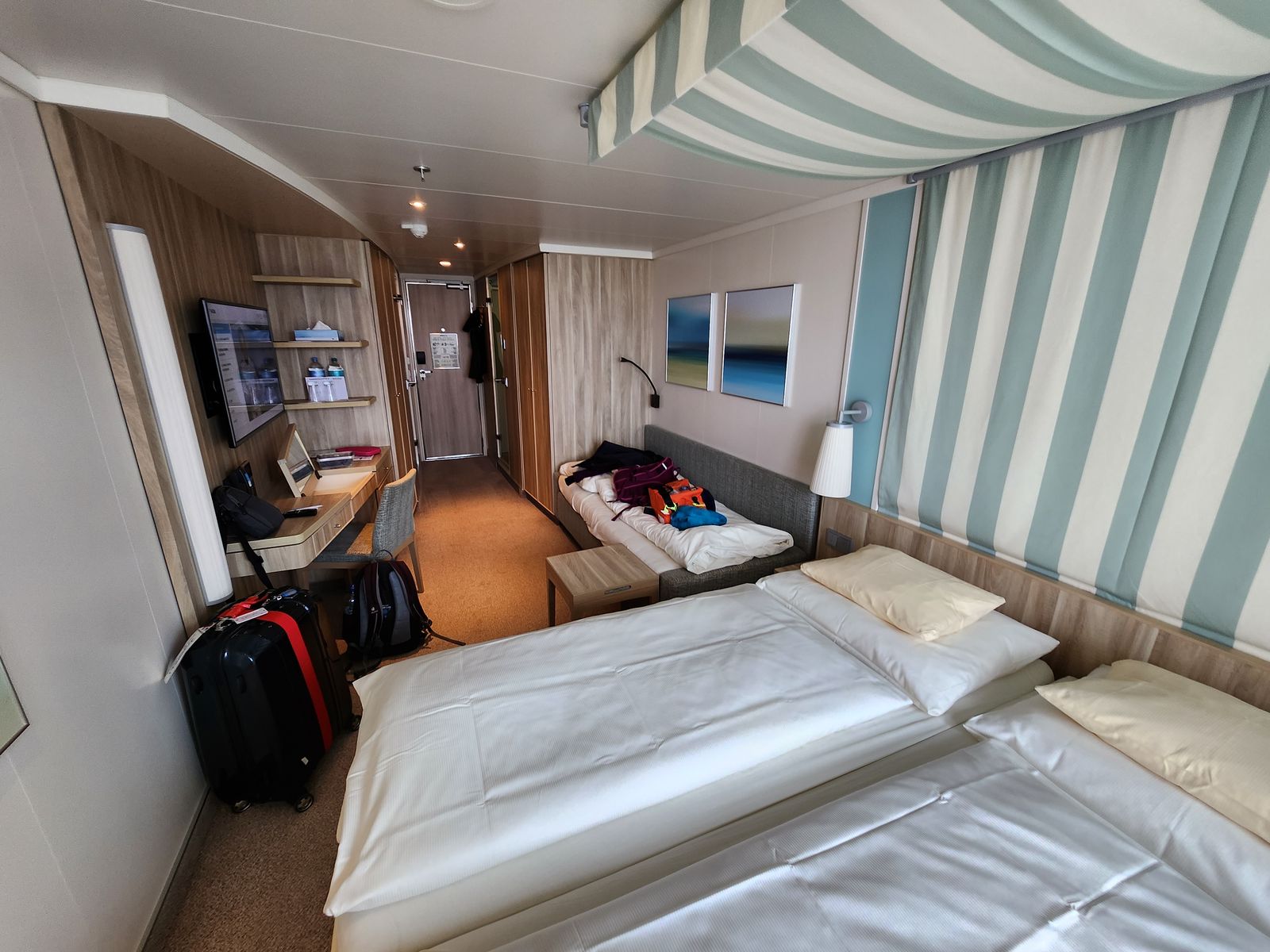 Haben diese Kabine zu dritt bewohnt. Platz im Kleiderschrank ausreichend.