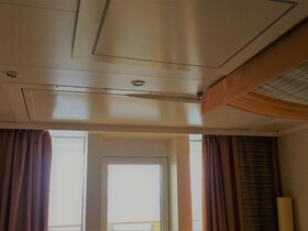 Normale 4-Bett-Kabine. Ein Bett kann von oben vor der Balkontüre herabgelassen werden, das andere ist ein Sofabett, sonst Doppelbett