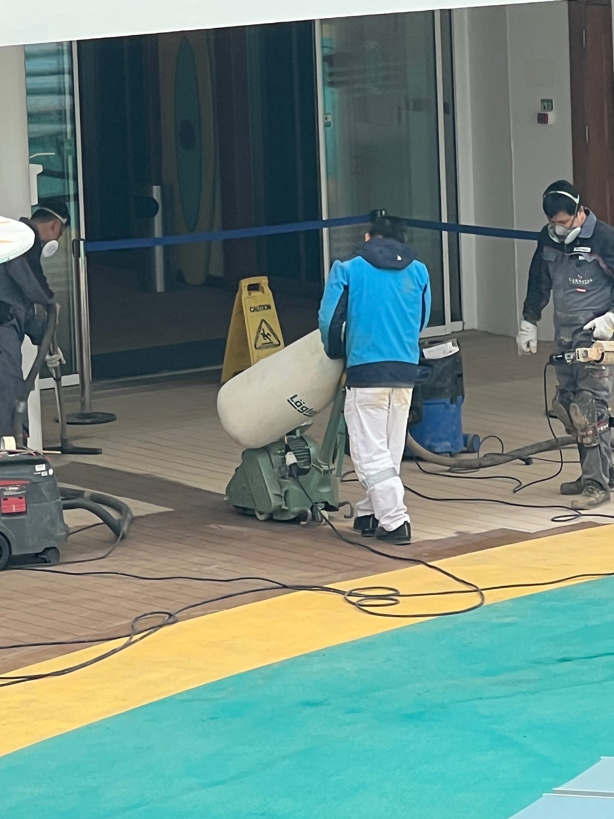 Womöglich wird das Nachbessern auch bevorzugt gemacht, wenn viele gerade auf Ausflug sind oder noch am Schlafen (falls keine Kabinen an den Stellen unten drunter oder neben dran)?
