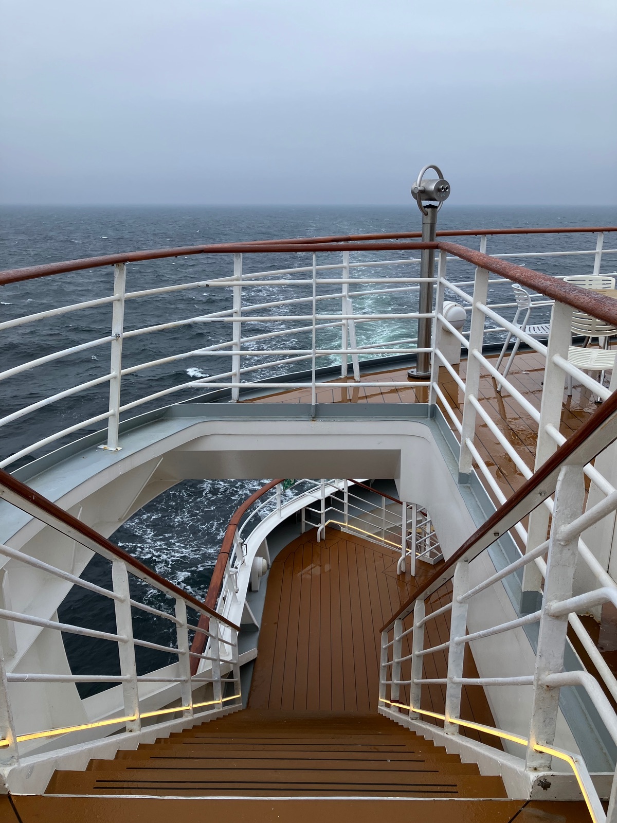 Aber Deck 5 ist wirklich ein guter Platz, überhaupt nicht kalt. Und das graue Wetter bei so rauer See (trotzdem fast ohne Seegang) find ich auch richtig schön. 😊