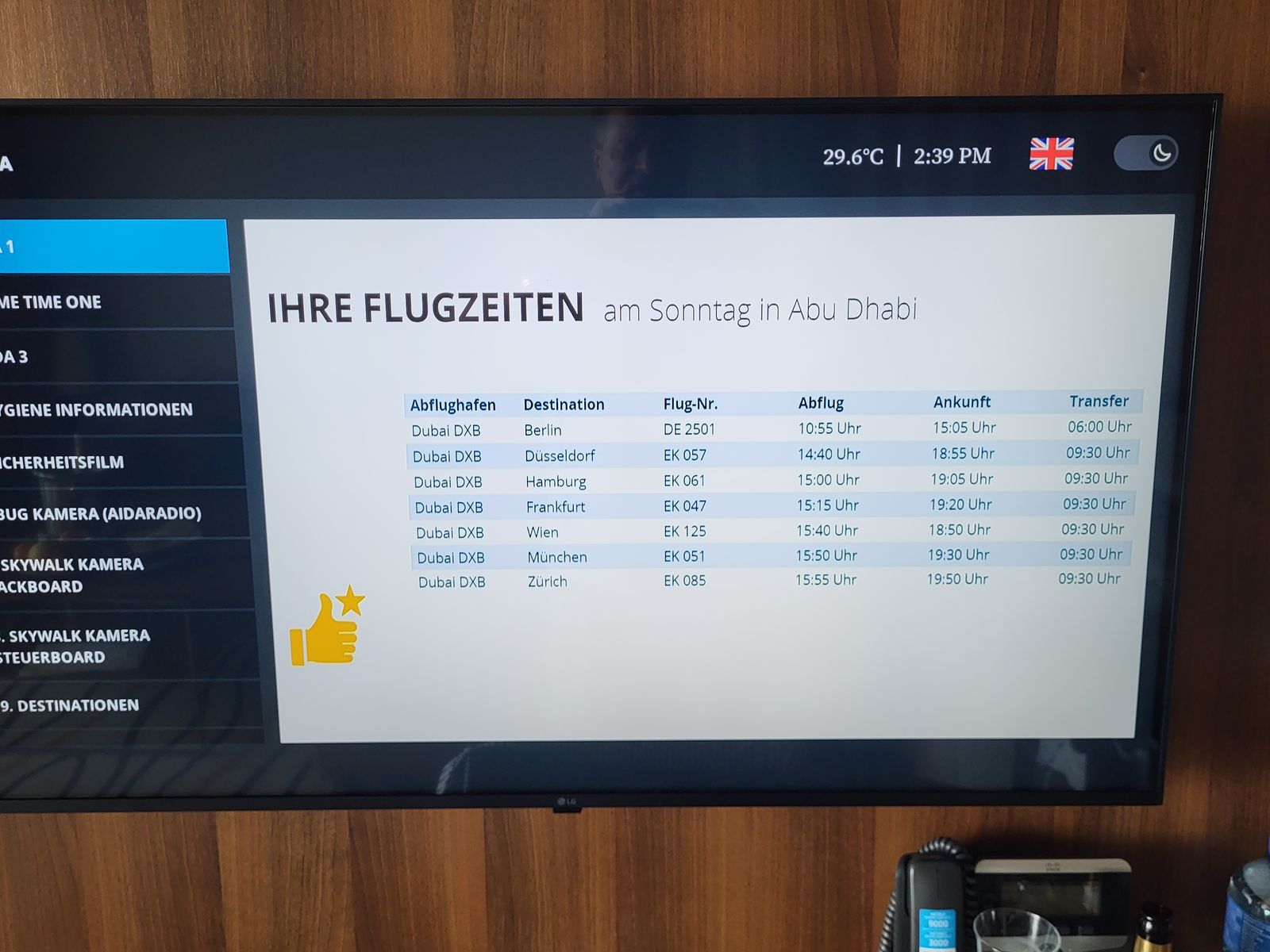 eine Frage, kannst Du mir vielleicht per PN die Abreiseinfo sowie evtl. die AIDA heute zu Sir Bani Yas zu Deiner Reise senden?