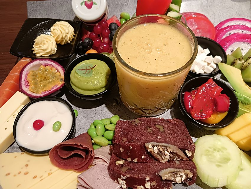 Was mir wirklich geschmeckt hat, war das Bananenbrot, auch die vegane Wurst fand ich ganz okay. Was jedoch für mich gar nicht ging, war - wie hier auch schon geschrieben - der vegane Lachs. Ich habe das Stück gegessen, doch es hat mich wirklich Überwindung gekostet. Der "Sunrise"-Smoothie war sehr lecker und Obst und Gemüse zum Frühstück sind ja sowieso gesund.