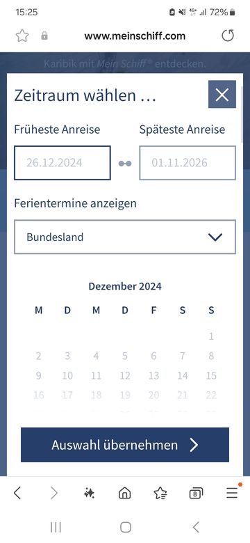 Mir werden nur Reisen bis 01.11.2026 angezeigt?