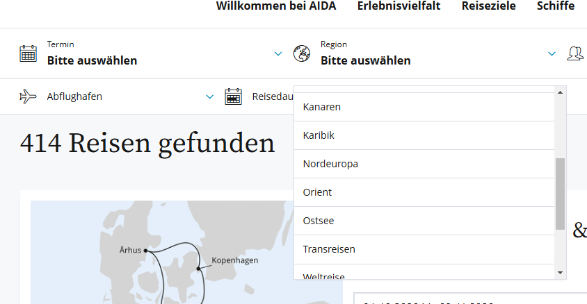 Bei mir AIDA auf der Buchungsseite, kann man auch schon das Ziel Nordamerika auswählen. War das schon immer so? Oder ist das neu?