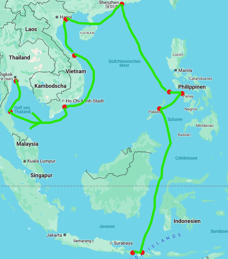 Dazu kommt eine unerwartete Meldung in Hongkong (Ocean Terminal) am 14. Januar 2027 der Stella von 7:00 bis 21:00 Uhr. Die Hinreise nach Bali wird also über Vietnam, Hongkong und die Phillipinen gehen und nicht über Malaysia/ Thailand/ Singapur/ Java.