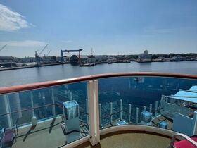 Ausstattung: Die Kabine ist typisch ausgestattet, hat aber den begehbaren Kleiderschrank und bietet somit mehr Raum. Das Beste ist jedoch der Balkon! Da die Kabine direkt an einer Einbuchtung liegt, hat sie einen runden Balkon mit deutlich mehr Platz. Wir konnten die Hängematte aufspannen und zeitgleich die Stühle davor stehen lassen. Außerdem hat man so den besseren Blick zum Heck.