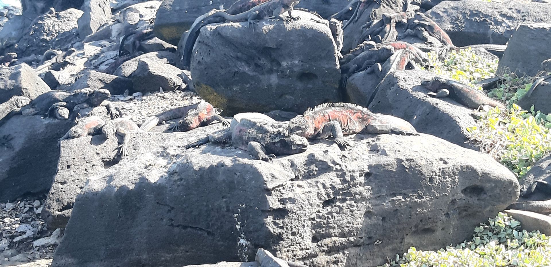 Du meinst bestimmt Meeres-Leguane. Es gibt nämlich auch Landleguane auf den Inseln. Das ist tatsächlich eine Art der Meeres-Leguane. Eine andere wird noch folgen.