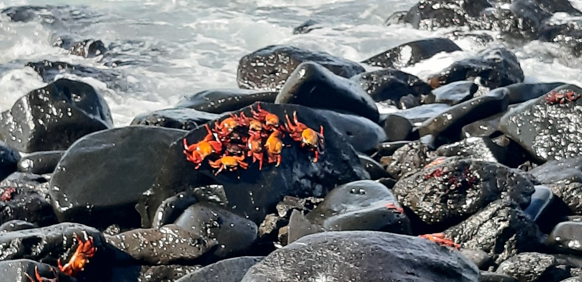 Du meinst bestimmt Meeres-Leguane. Es gibt nämlich auch Landleguane auf den Inseln. Das ist tatsächlich eine Art der Meeres-Leguane. Eine andere wird noch folgen.