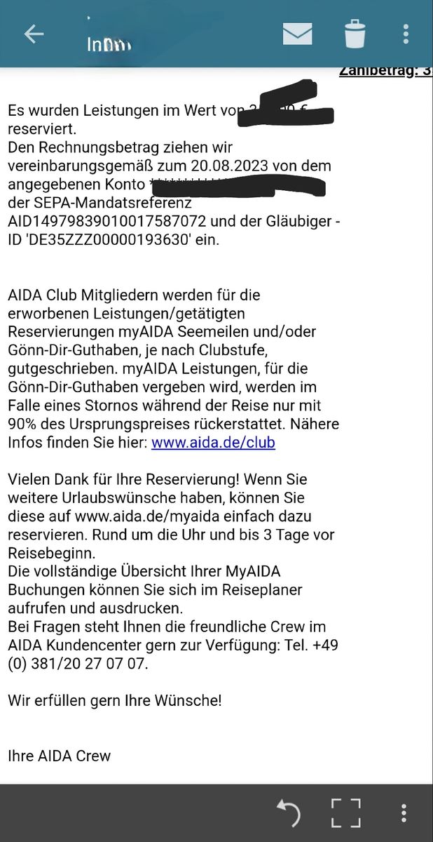 - RE: MyAida Zahlungseingang