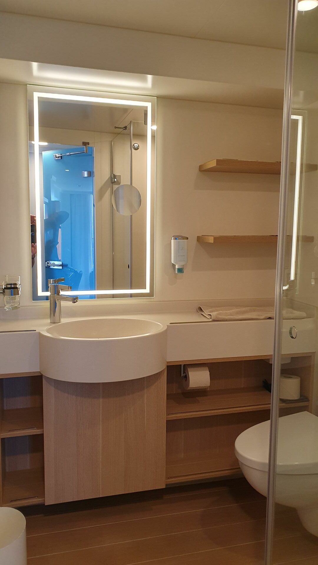 Ankunft: Die Kabine ist grandios - die schönste, die wir bisher hatten. Genau meine Farben - hell - einfach toll.