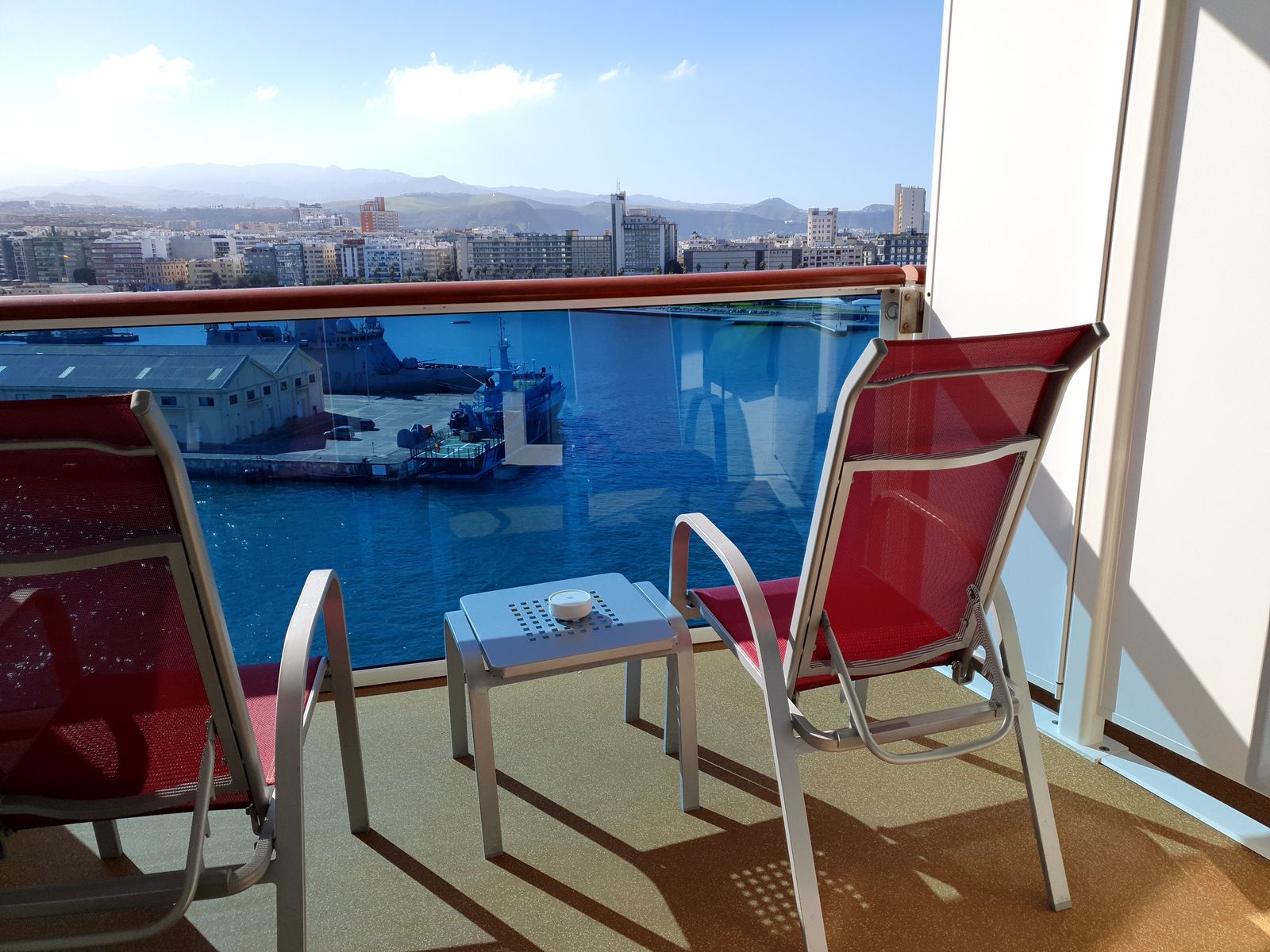 Umzug in eine gewöhnliche Verandakabine in ROT - ziemlich düster und überhaupt nicht meins - aber letztlich auch mit Balkon auf Deck 12.