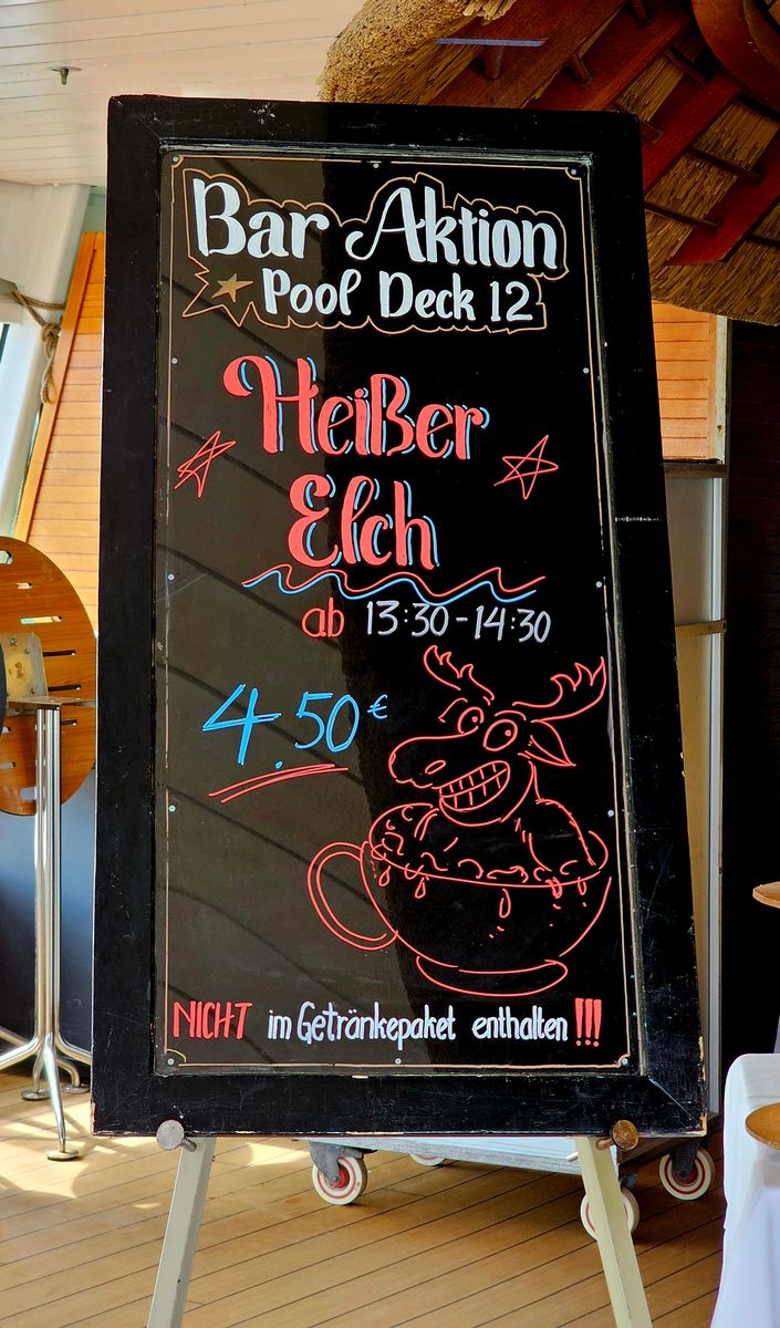 Heute stand bei uns eher chillen auf dem Programm. Zuerst Frühstück im Rossini, danach schön in der Sonne auf dem Balkon liegen und im 17 Uhr dann das Club@Sea Event in der Almhütte. Wir waren dort nur knapp 30 Leute und haben Bingo gespielt. Das Glück war auf meiner Seite und ich hatte tatsächlich ein Bingo und habe einen Gutschein für ein 3 Gang Menü im Buffalo gewonnen :wiegeil: