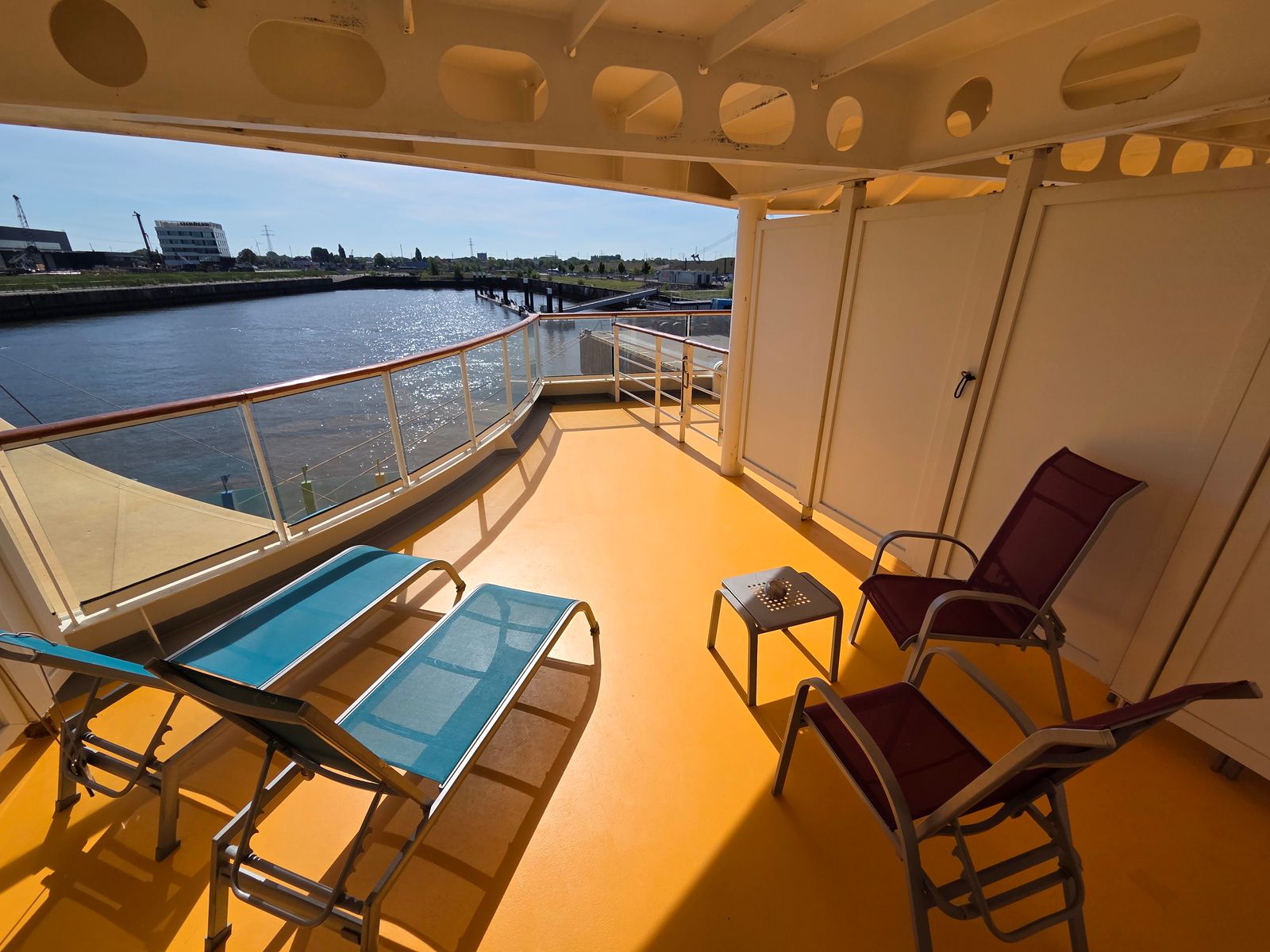 Nach traditionellen Begrüßung Cocktail geht's ab in die Sonne... (wenn Kabine bezugsfertig, dann ist natürlich Balkonien angesagt)
