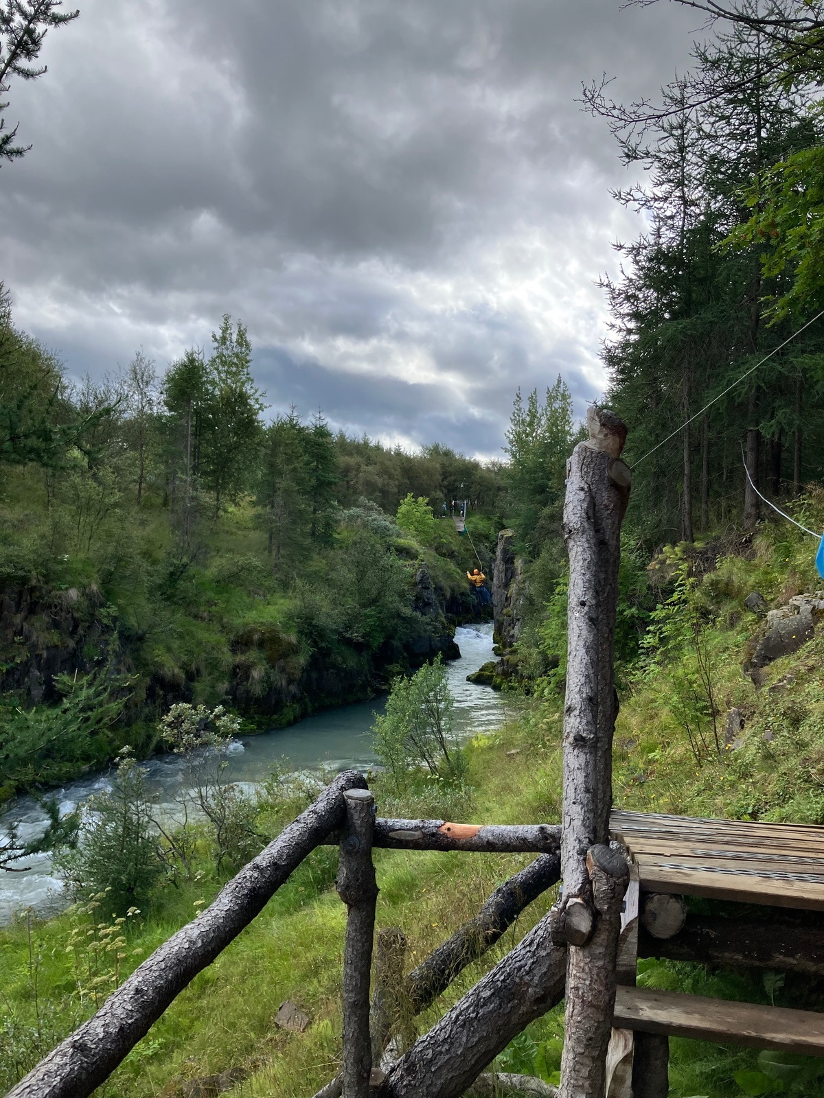 Danach kommen nämlich 1,5 km Hauptstraße. 🙈 Die ist nicht sooo stark befahren, aber die Autos und Busse brettern schon sehr an einem vorbei, und auch wenn man ganz ganz links geht, ist nur wenig Platz, der Fahrbahn auszuweichen. Das war kein schöner Abschnitt, dazu noch stramm bergauf… Aber ich habe es geschafft und bin beim Wasserfall angekommen.