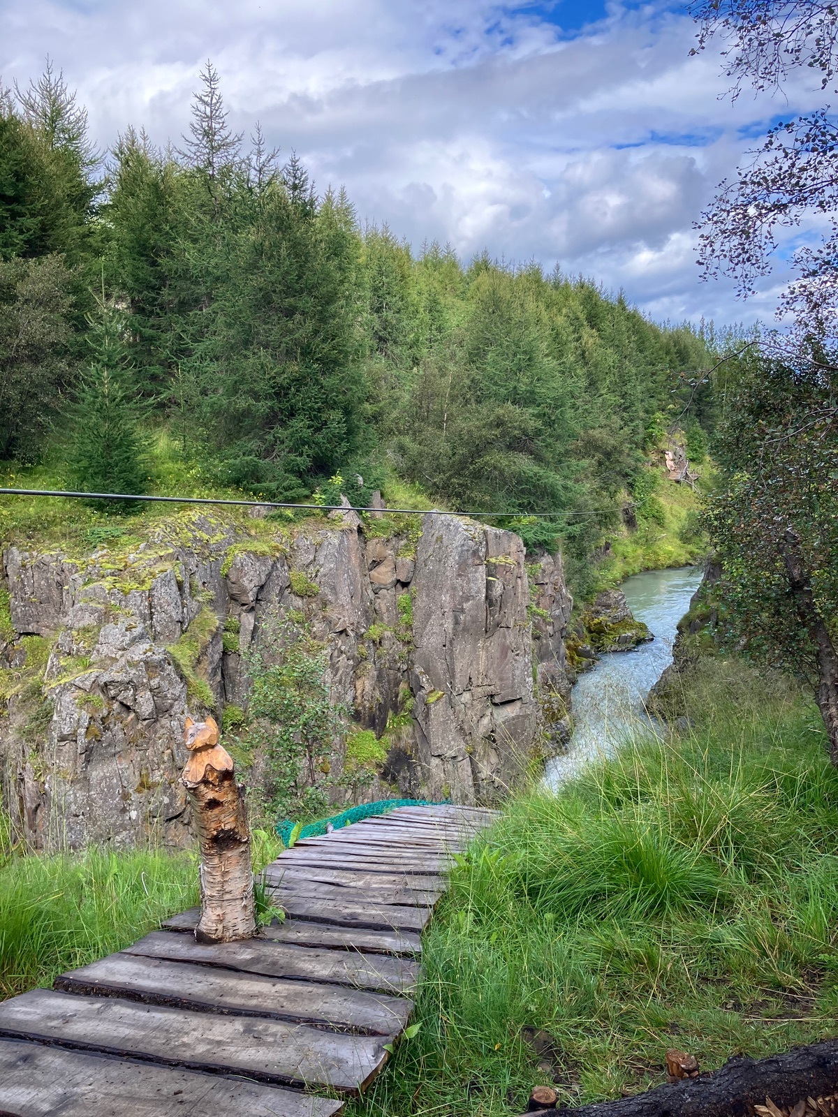 Danach kommen nämlich 1,5 km Hauptstraße. 🙈 Die ist nicht sooo stark befahren, aber die Autos und Busse brettern schon sehr an einem vorbei, und auch wenn man ganz ganz links geht, ist nur wenig Platz, der Fahrbahn auszuweichen. Das war kein schöner Abschnitt, dazu noch stramm bergauf… Aber ich habe es geschafft und bin beim Wasserfall angekommen.