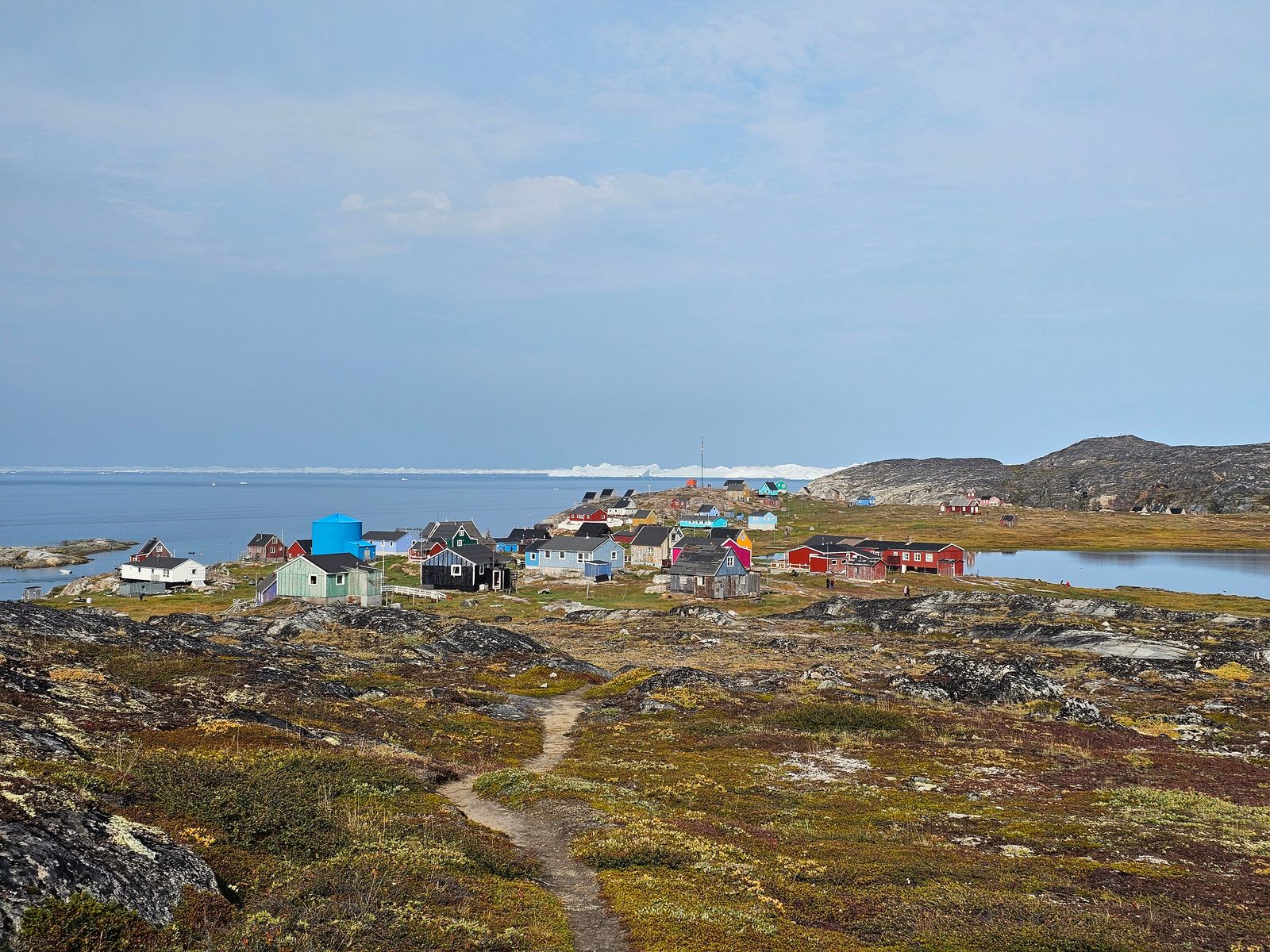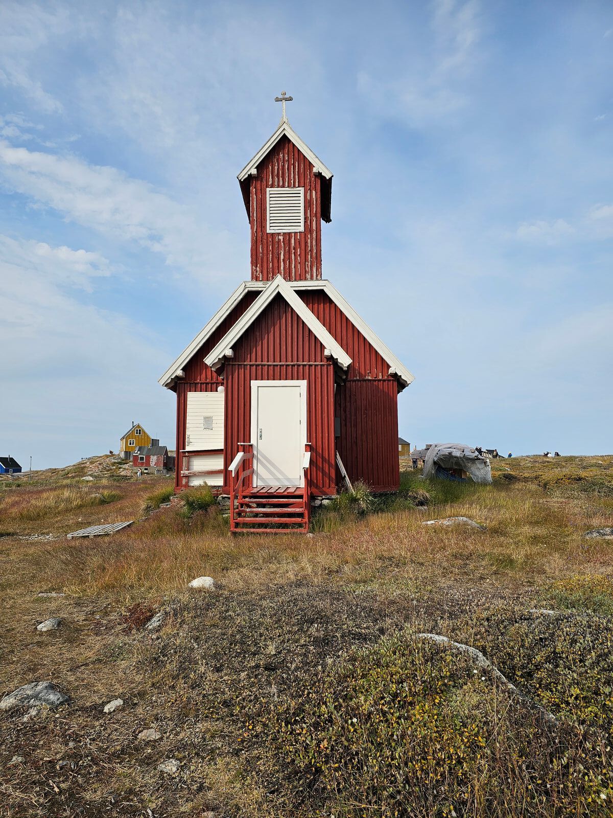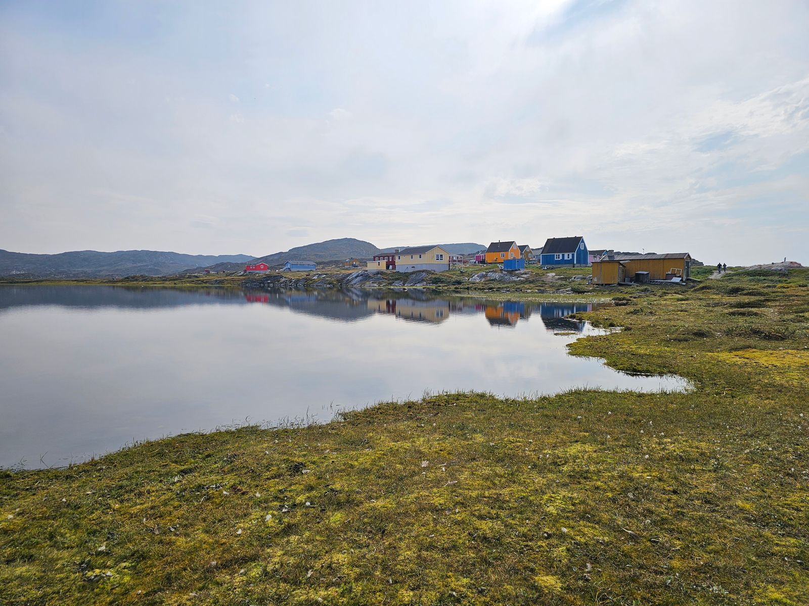 „Dorf“ ist eigentlich übertrieben, es handelt sich eher um eine Siedlung, dafür aber um eine der ältesten in Grönland. Aktuell leben dort 55 Einwohner, und es gibt eine Lodge mit einzelnen Bungalows für Touristen. Deren Weg am Wasser entlang war aber abgesperrt, und auch zwei Häuser im Ort sind exklusiv für Lodge-Gäste (erkennbar an der schwarzen Farbe). Trotzdem ist ein Spaziergang durch den Ort sehr schön, wenn auch kurz.