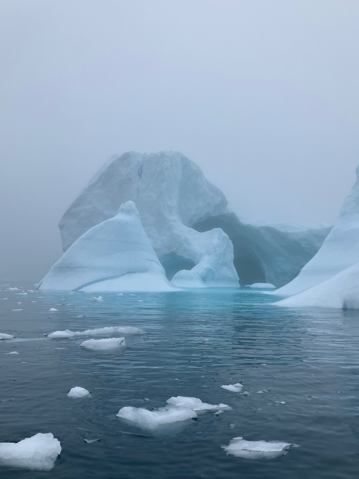 Durchs Eisfeld sind wir aber ganz langsam gefahren und auch viel dichter dran als gestern mit dem großen Boot. Und da war sie, die mystische Stimmung zwischen den Eisbergen im Nebel.