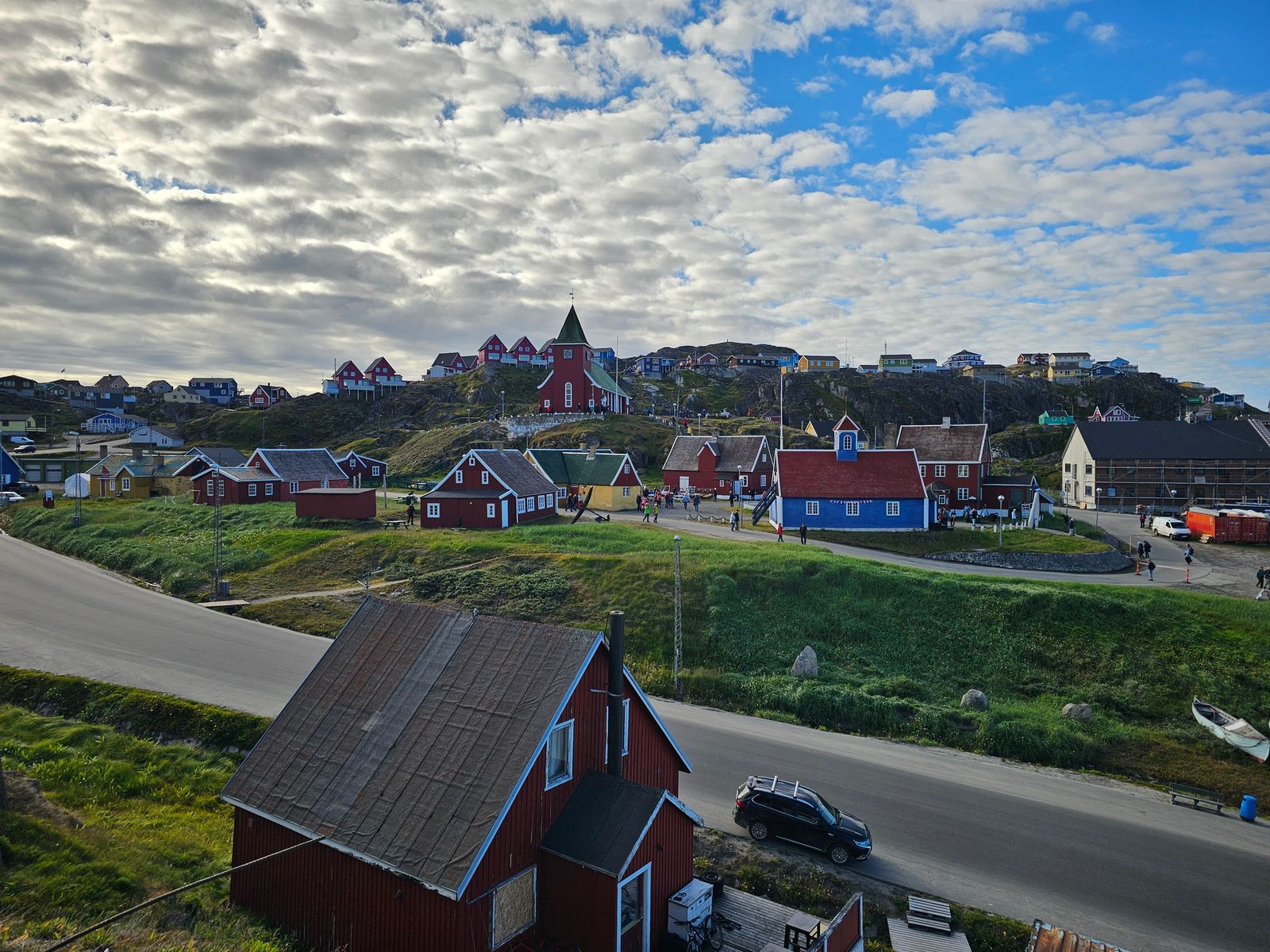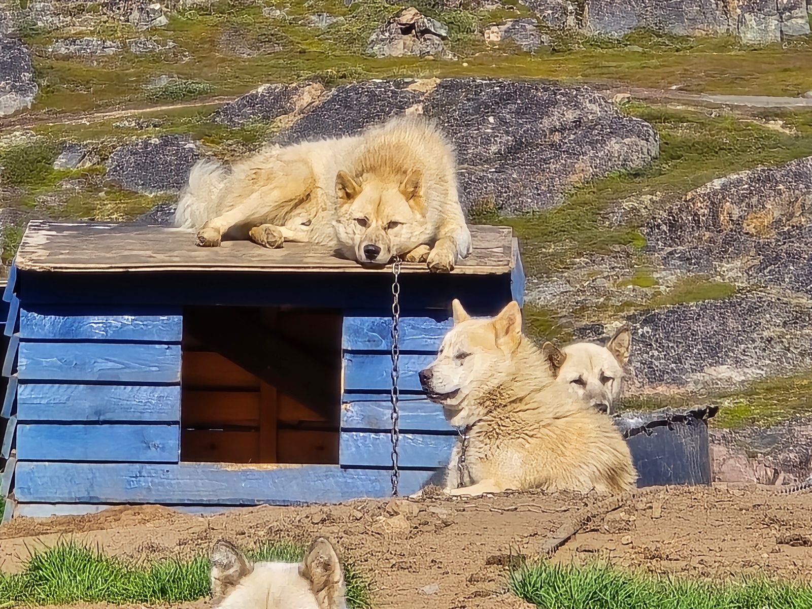 Der Ort wird im Sommer als Schullandheim genutzt, wo Summer Camps für Kinder abgehalten werden, denn in Grönland wird es als sehr wichtig erachtet, dass Kinder die Lebensweise der Vorfahren kennenlernen und weitergeben. So ein Camp fand dort gerade statt, so dass wir in keins der Häuser reingehen konnten. Trotzdem waren das Gelände und die teils verfallenen Häuser sehr schön anzuschauen, und unser Guide konnte zu fast jedem Haus eine Geschichte erzählen, wer dort gewohnt hat.