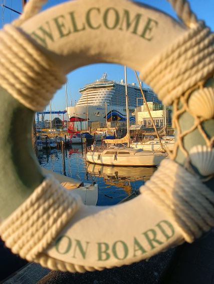 Genau gegenüber des „Kunstsilos“ liegt unsere AIDAnova in ihrer vollen Schönheit und sowas von fotogen, dass ich hier direkt mal wieder meine Glaskugel aus den Tiefen meines Rucksacks hole.