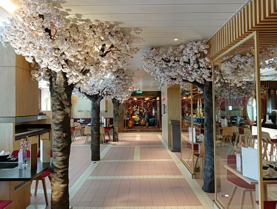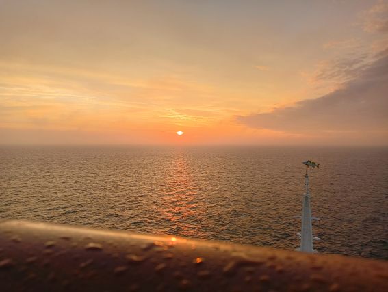 Schließlich drehe ich eine Runde an Deck und suche dann meinen für 19 Uhr im „Oceans“ reservierten Tisch auf. Mich erwartet ein sowohl optisch als auch meinen Gaumen ansprechendes leckeres Abendessen, der perfekte Ausklang eines für mich perfekten Tages. Ja, ich war zur richtigen Zeit am für mich richtigen Ort. Ein Tag, an dem mir einfach mal nicht nach Show und Trubel im Theatrium zumute ist. So bleibe ich bis zum Sonnenuntergang an Deck, finde etwas später sogar einen freien Strandkorb am Heck, wo ich mich zwei leckere Getränke gönne.
