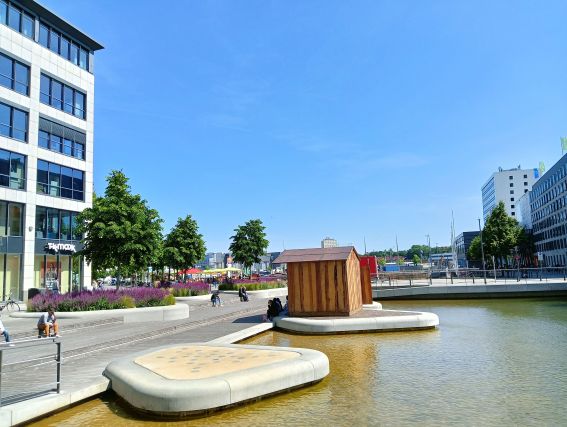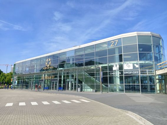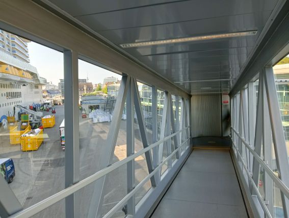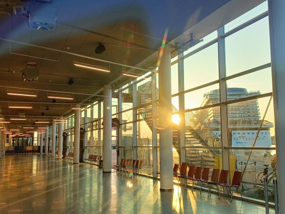 Es ist kurz vor 17:00 Uhr, als ich wieder am Cruise Terminal bin, mit Blick auf die markante Kunstherberge.