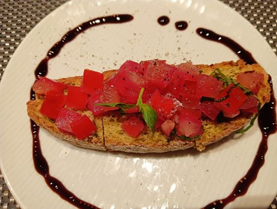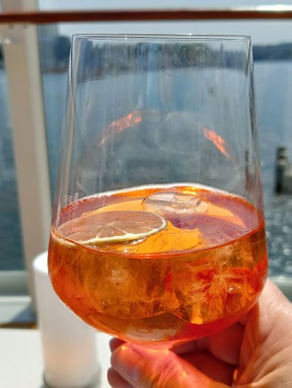 Schließlich drehe ich eine Runde an Deck und suche dann meinen für 19 Uhr im „Oceans“ reservierten Tisch auf. Mich erwartet ein sowohl optisch als auch meinen Gaumen ansprechendes leckeres Abendessen, der perfekte Ausklang eines für mich perfekten Tages. Ja, ich war zur richtigen Zeit am für mich richtigen Ort. Ein Tag, an dem mir einfach mal nicht nach Show und Trubel im Theatrium zumute ist. So bleibe ich bis zum Sonnenuntergang an Deck, finde etwas später sogar einen freien Strandkorb am Heck, wo ich mich zwei leckere Getränke gönne.
