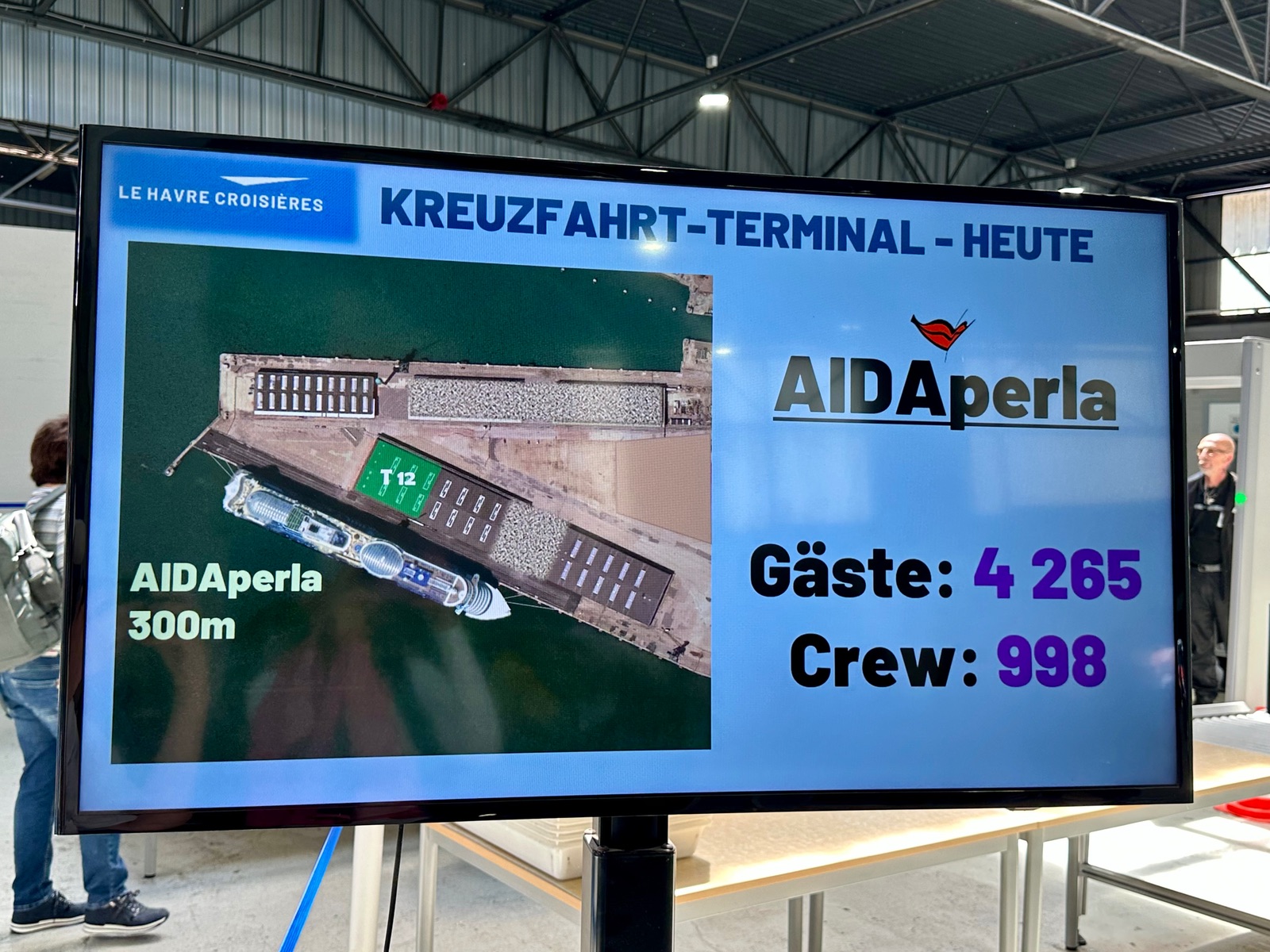 Wie wir nun Dank des Le Havre Cruiseterminals erfahren durften (Zahlen lügen nicht), ist die Perla rappelvoll.