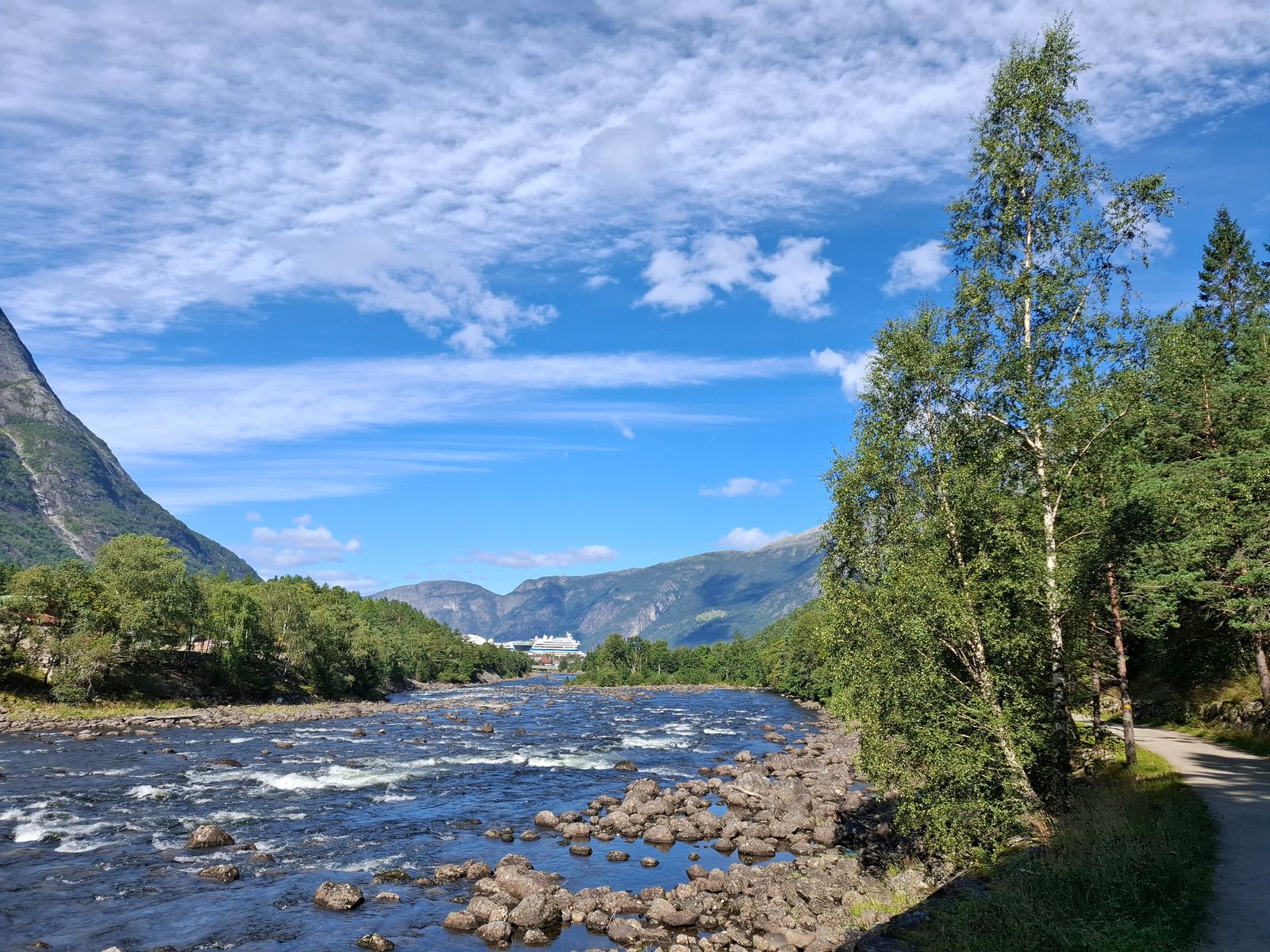 Der Tag heute in Eidfjord war einfach toll. Wir hatten richtig Glück mit dem Wetter ( Sonne 🌞, blauer Himmel, kein Wind und schön warm) und haben eine Wanderung gemacht.