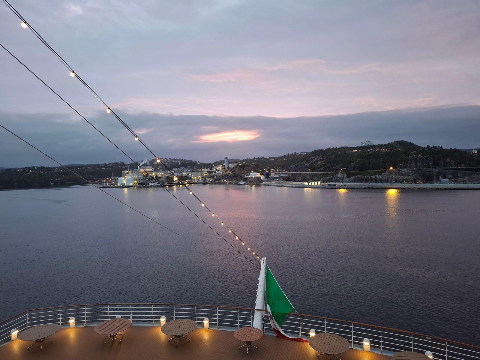 So - AIDAsol ist gerade dabei den letzten Hafen dieser Reise Kristiansand zu verlassen. Leider habe ich mich erkältet und war deshalb hier und gestern in Bergen nur kurz von Bord.