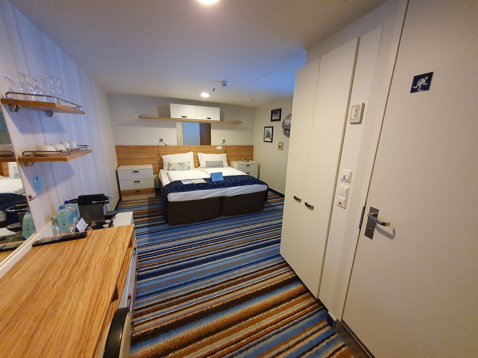 Sehr geräumige Innenkabine nahe am vorderen Treppenhaus mit Verbindungstür. Keine störenden Geräusche wahrnehmbar.