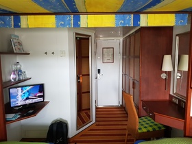 Grundsätzlich ist es eine recht praktische Kabine, da Sie ziemlich zentral nahe der Rezeption liegt. Auch Geräusche außerhalb der Kabine waren so gut wie nicht zu hören.