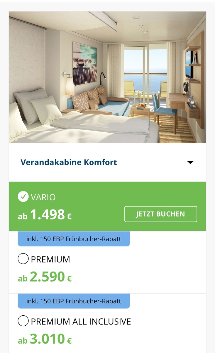 Aktuell kostet die Reise 1498,- Euro im Vario- und 2590,- Euro im Premium-Tarif. Wir hatten im Vario-Tarif gebucht. Wir würden die Reise für 1200,- Euro abgeben und übernehmen selbstverständlich die Umschreibegebühren.