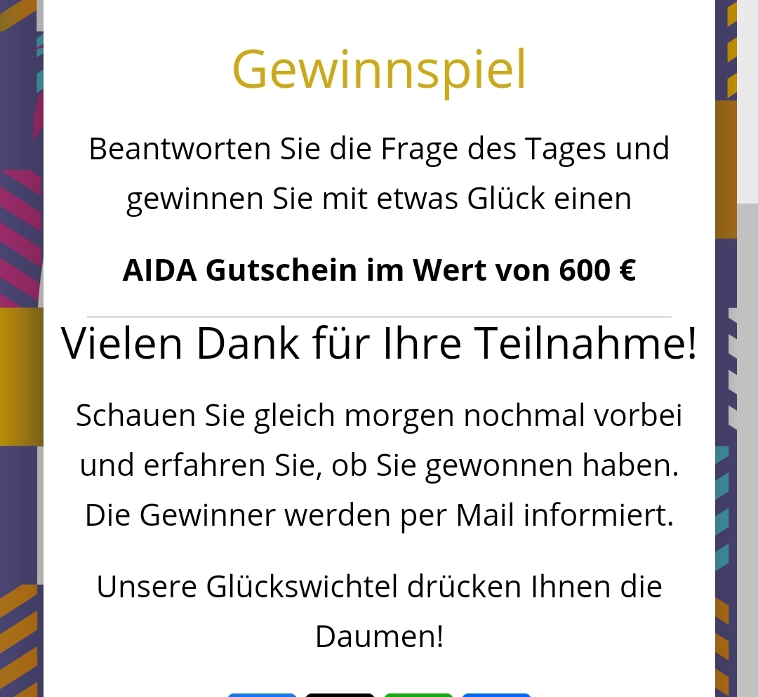 gebe aber die Mailadresse an an die sowieso die AIDA Post kommt und so bekomme ich den nicht doppelt und man kann den ja nach Weihnachten sofort wieder canceln ![]()