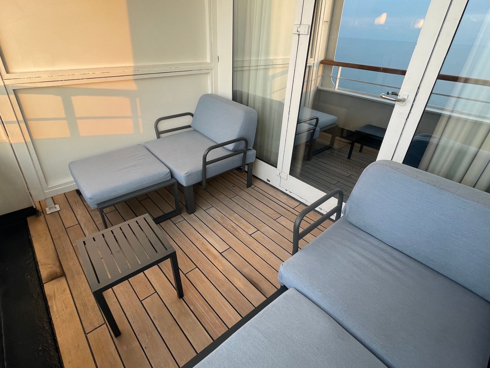 Durch einen Kabinentausch konnte ich diese Balkonkabine auf Deck 9 im Rahmen einer Kurzreise für 3 Tage bewohnen.