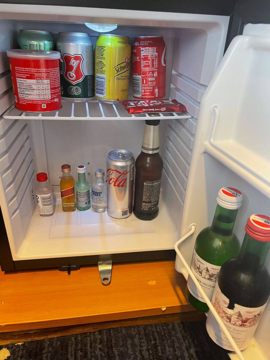 Es gibt eine kleine Minibar mit moderaten Preisen.