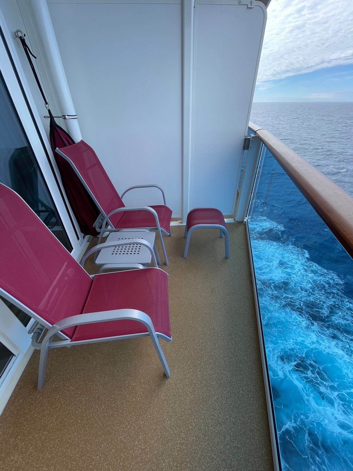Der Balkon ist etwas größer, weil die Kabine am Anfang der Rundung liegt.