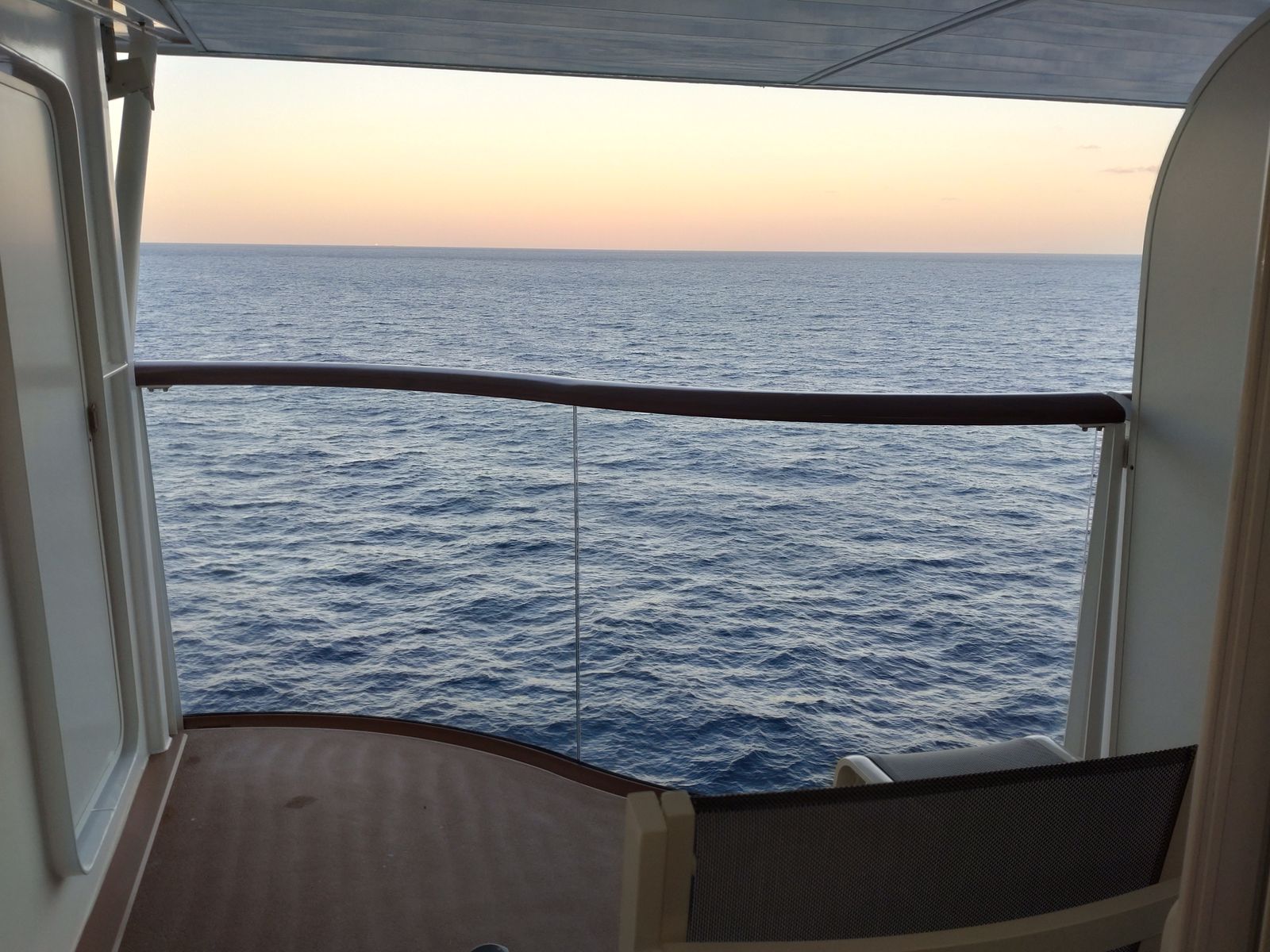 Es handelt sich hierbei um eine normale Balkonkabine mit Bett am Fenster in der Kategorie F. Das besondere ist aber der verlängerte Dachüberstand und zusätzlich der größere Balkon. Wir hatten den ganzen Tag Schatten, was allerdings auch an der Fahrtrichtung lag. Für uns, die nicht gerne in der Sonne sitzen, war das perfekt.