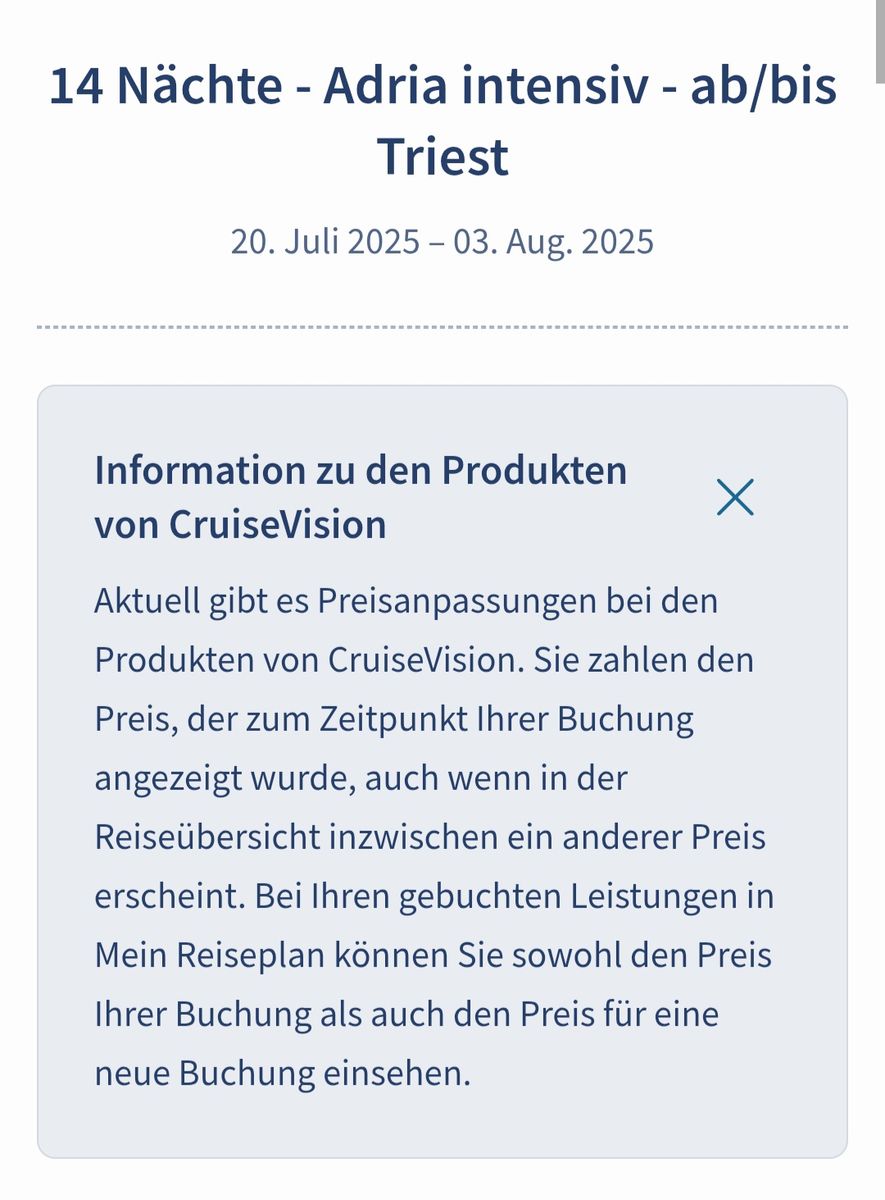 Wir machen alles auf eigene Faust. War schonmal in Dubrovnik und Bari und den Rest lesen wir hier uns im Forum an. Freuen uns auch sehr!