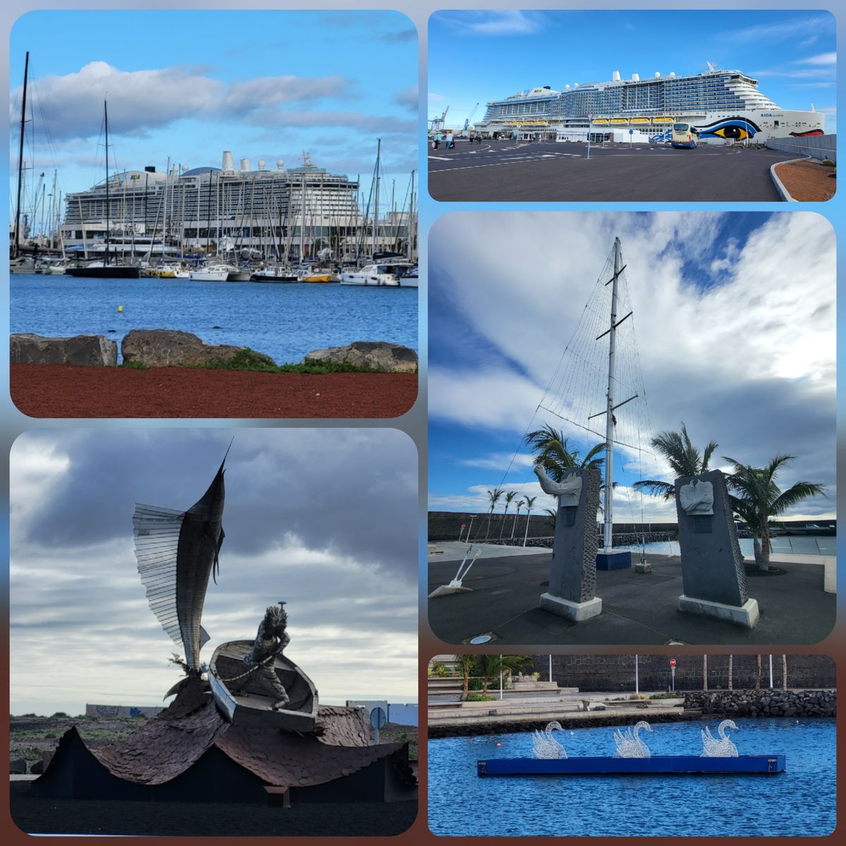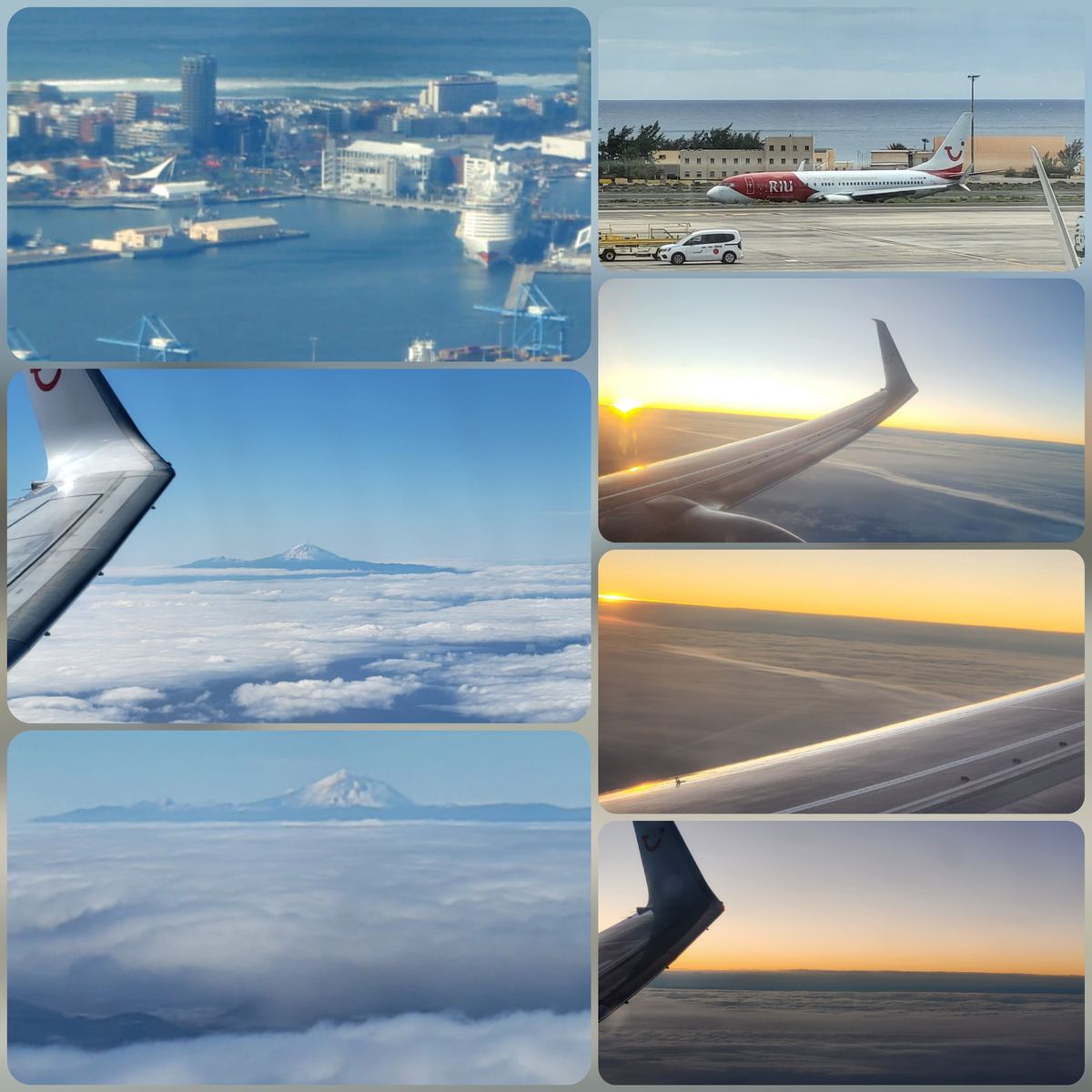 Aus dem Flugzeug noch ein Blick auf die AIDAcosma und über den Wolken der Blick auf den schneebedeckten Teide auf der Nachbarinsel Teneriffa🤩 sowie der letzte Sonnenuntergang auf dieser Reise🌅