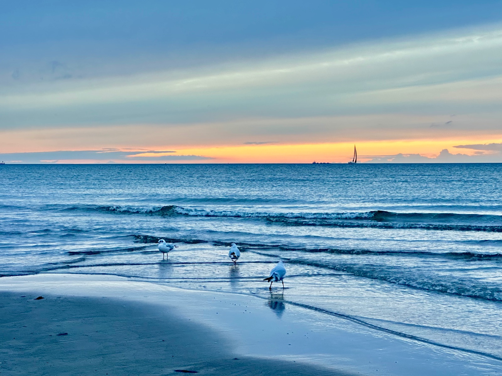 Ich hoffe, der Himmel zeigt uns auch morgen nach dem Auslaufen so schöne Farben wie heute Abend.
