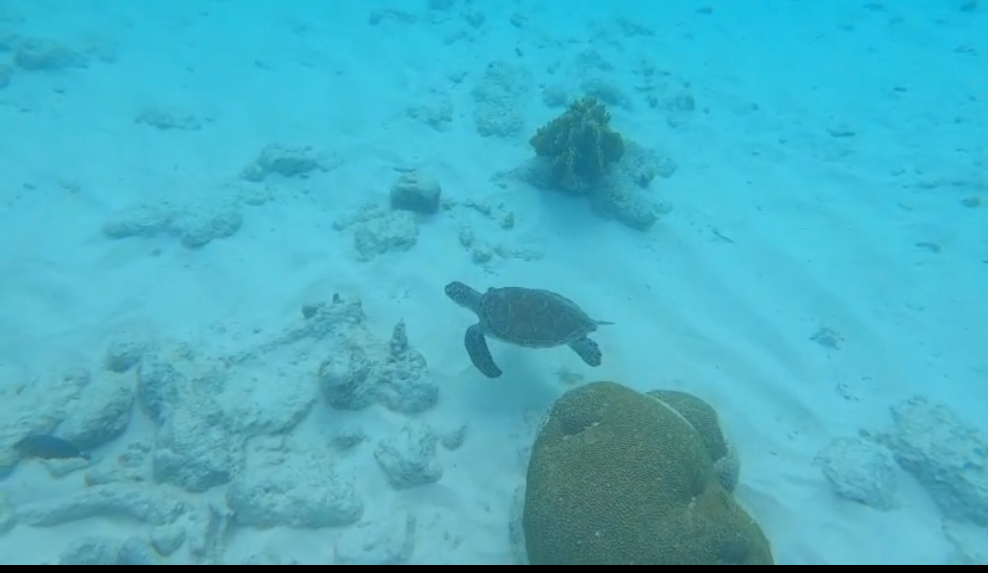 Zunächst ging es die Nordroute entlang mit Schnorchelstop am Punkt 1000 Steps und Sichtung einer Schildkröte.