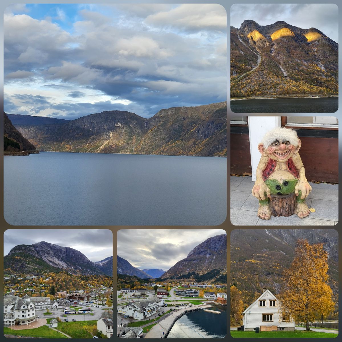 Als Beweis wir hatten heute kurz ein bisschen blauen Himmel und einen Sonnenstrahl (rechts oben🌤) in Eidfjord. Ansonsten leichter Regen☔️. Aber es gibt kein schlechtes Wetter nur schlechte Kleidung😉