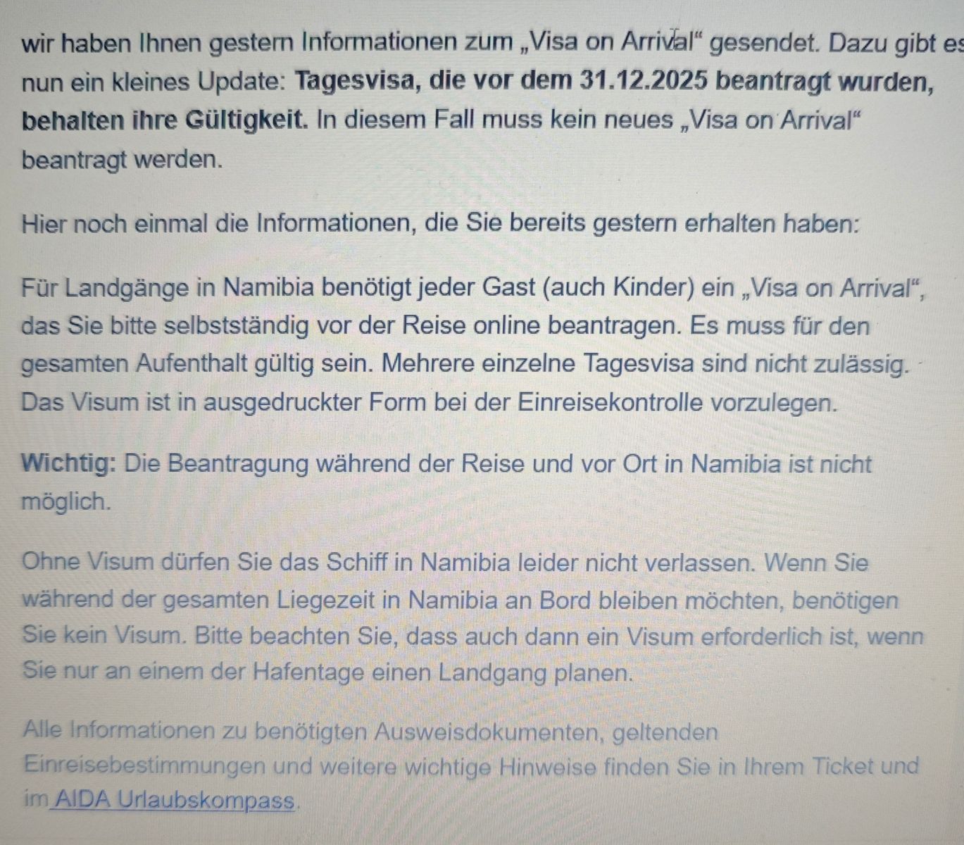 • RE: AIDAstella: Südafrika & Namibia | 14 Nächte | 21.01.2026 bis 04.02.2026 (Mittwoch, 21. Januar 2026, 00:00-Mittwoch, 4. Februar 2026, 00:00)
