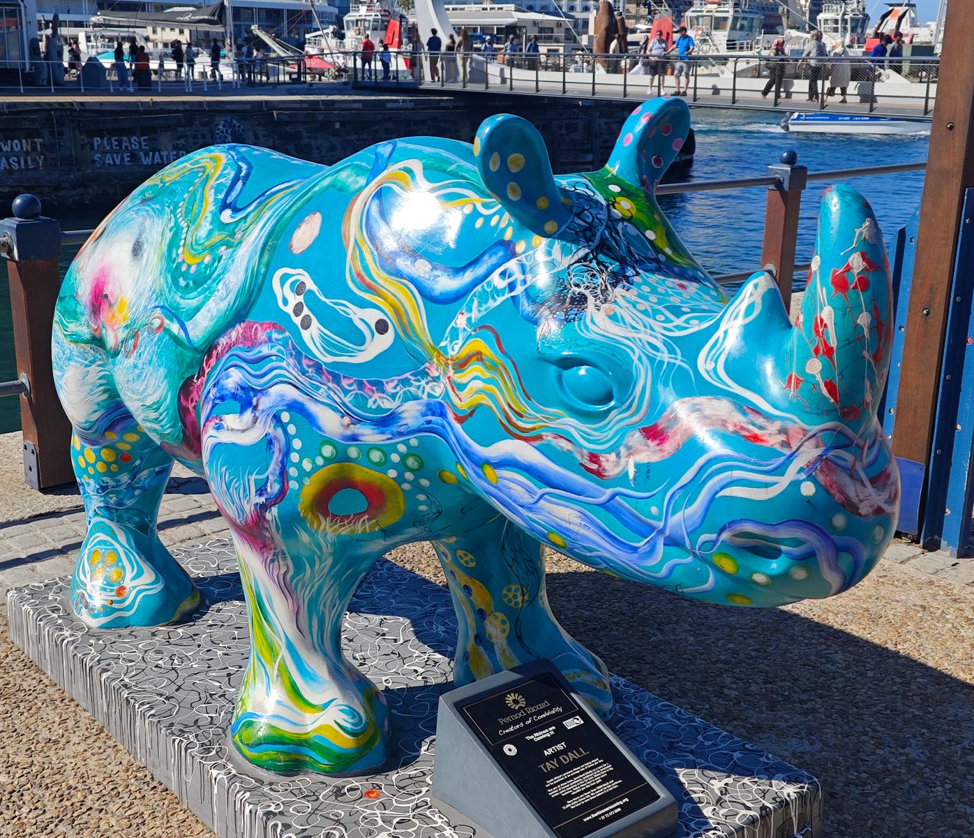 Begrüßung an der Waterfront, die man hier auf dem Gelände ehemaliger Docks errichtet hat.