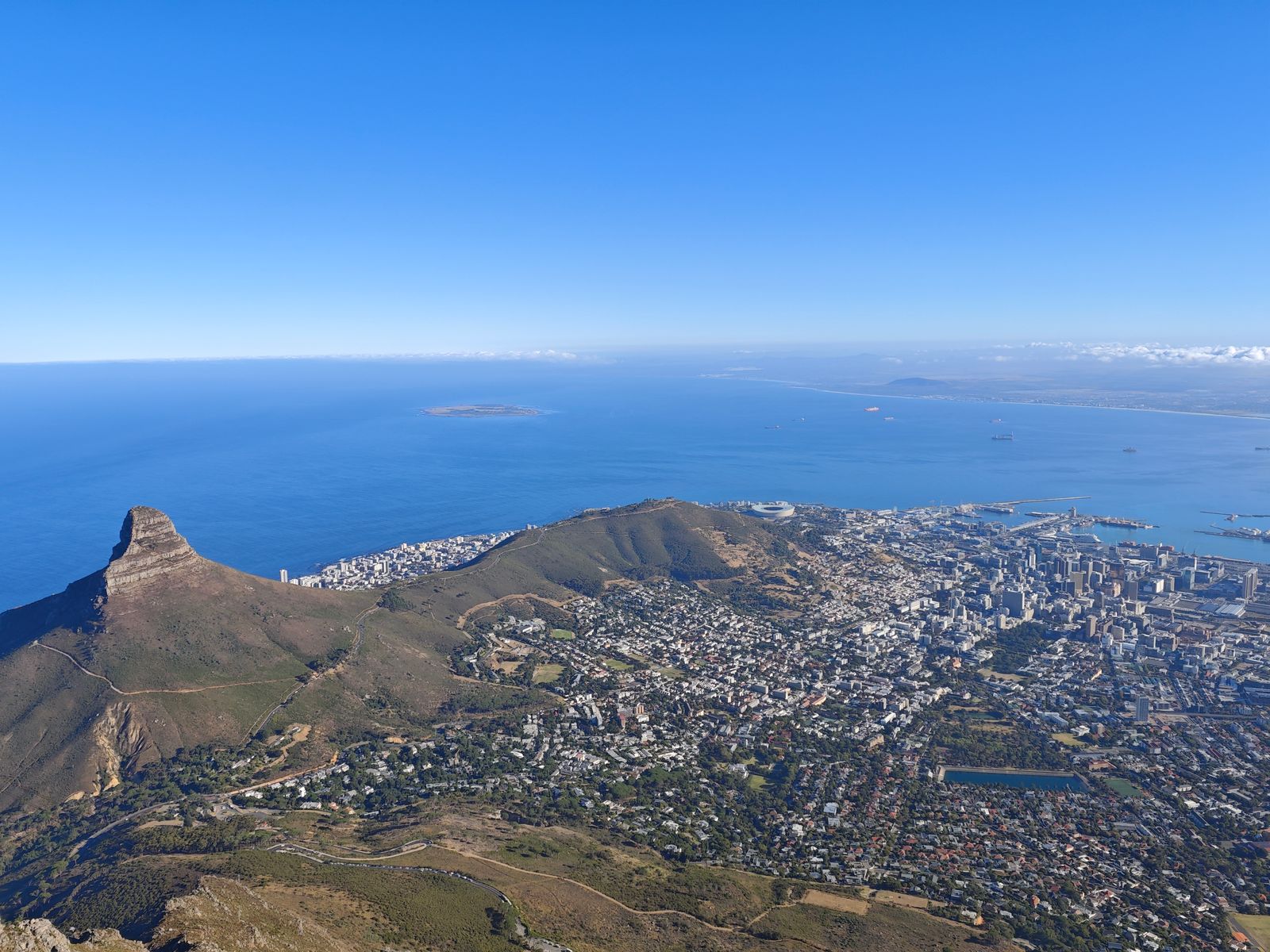 Mit dem 600 m hohen Lions Head vorne