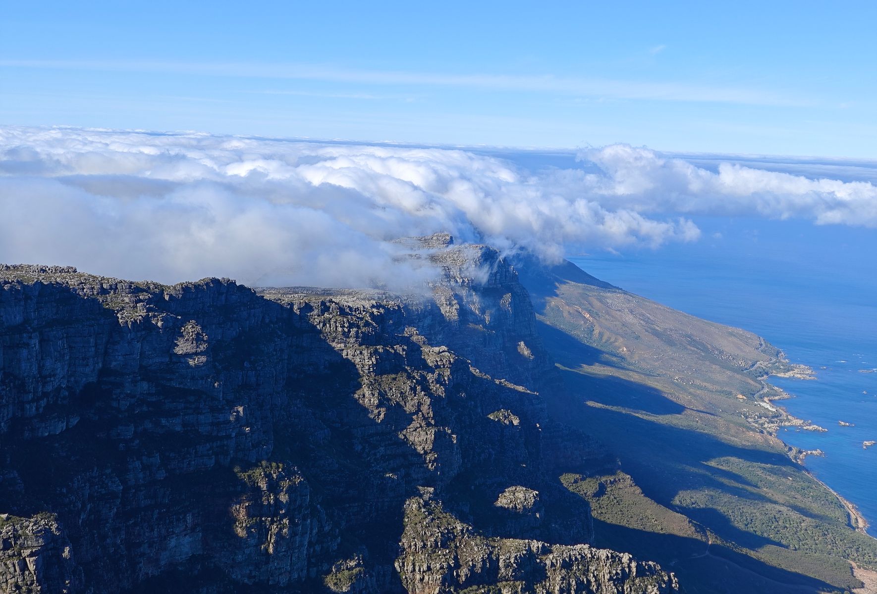 keine gute Idee. Wir hatten den ersten Bus und sind direkt zum Tafelberg. Oben angekommen hat mich fast der Schlag getroffen...eine Schlange so lang, so dass man deren Ende nicht sehen konnte. Mein Glück war (in dieser Situation ein Glück, ansonsten schöner Scheiss) dass ich zu dem Zeitpunkt mit Krücken unterwegs war und dies hat eine Mitarbeiterin gesehen und mich/uns aus der Schlange gezogen. Wir hätten sonst mindestens 2 Stunden warten müßen.