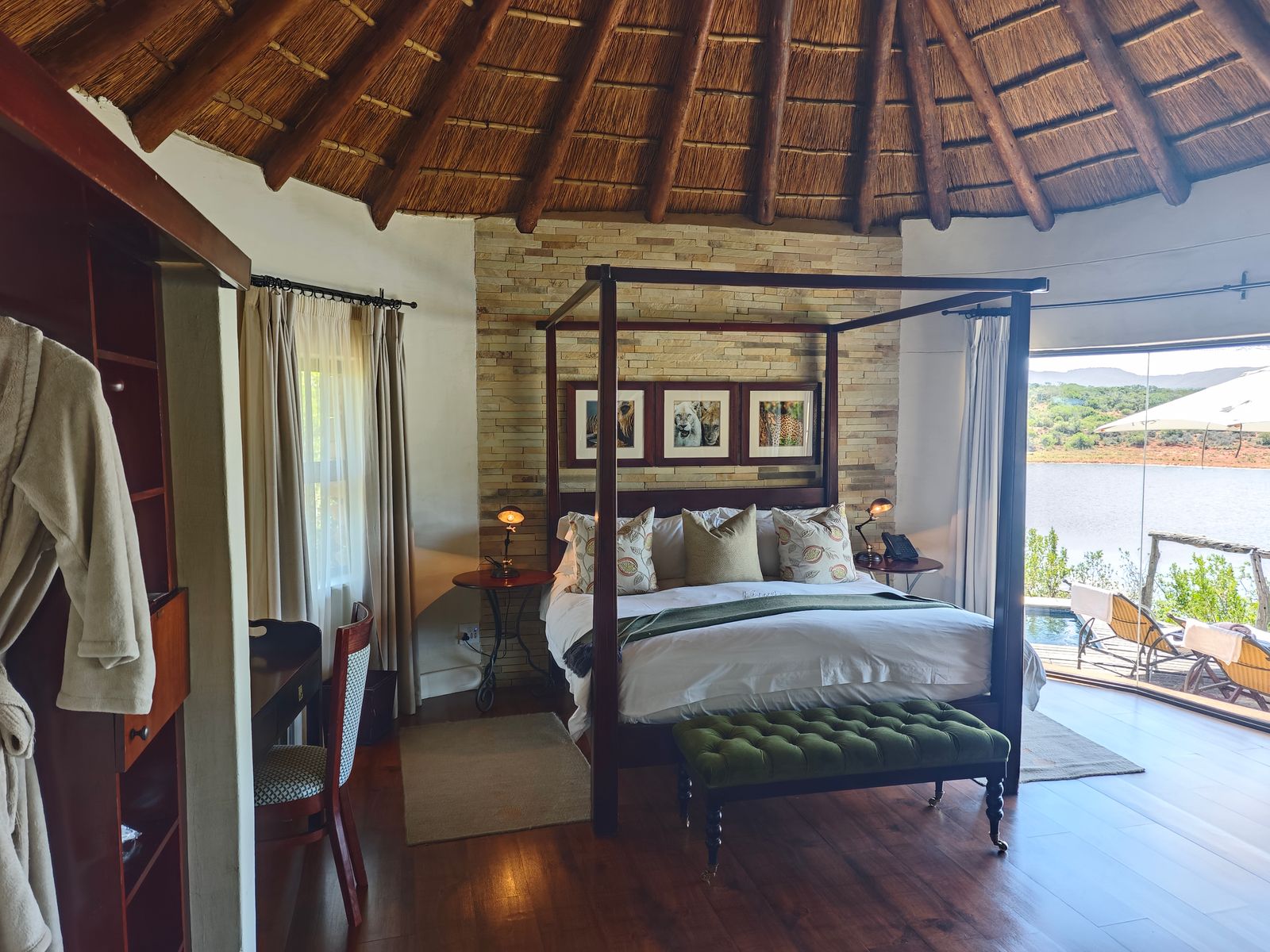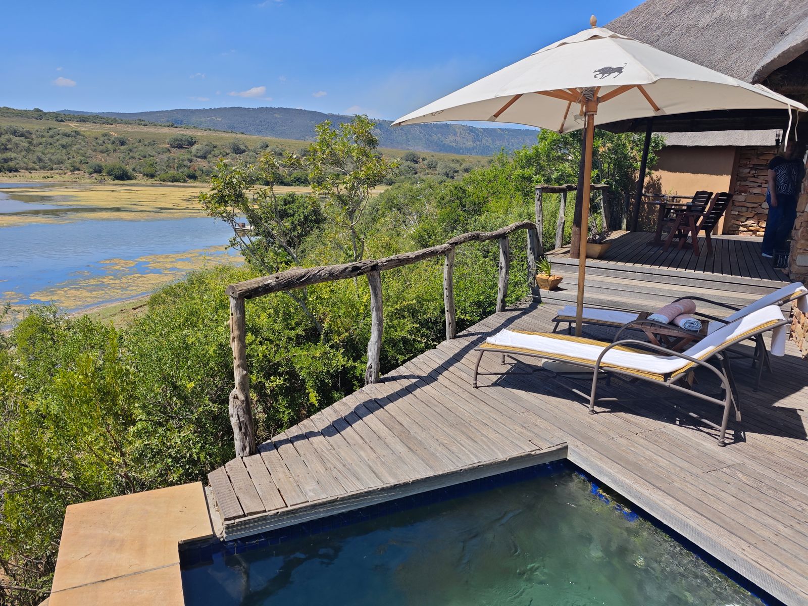 in den Büschen sieht und unterhalb der Terrasse der Affe langläuft... findet man es fast schon schade, gleich um 16:30 Uhr zur Safari-Ausfahrt von hier weg zu müssen.