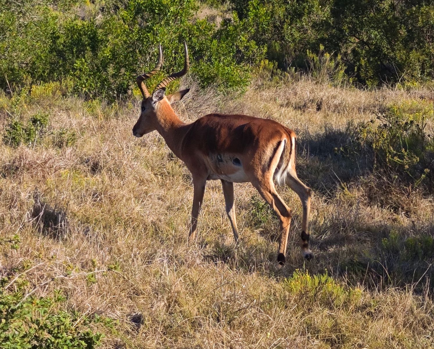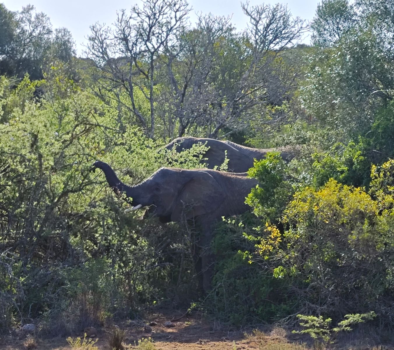 Immer wieder halten wir an, dem erfahren Ranger entgeht offenbart nichts. "Tourist einfach" wäre jetzt vorbeigefahren. Aber das mit dem Selbstfahren geht ja hier wohlweislich eh nicht. Und nicht nur wegen "ich sehe nur Büsche".