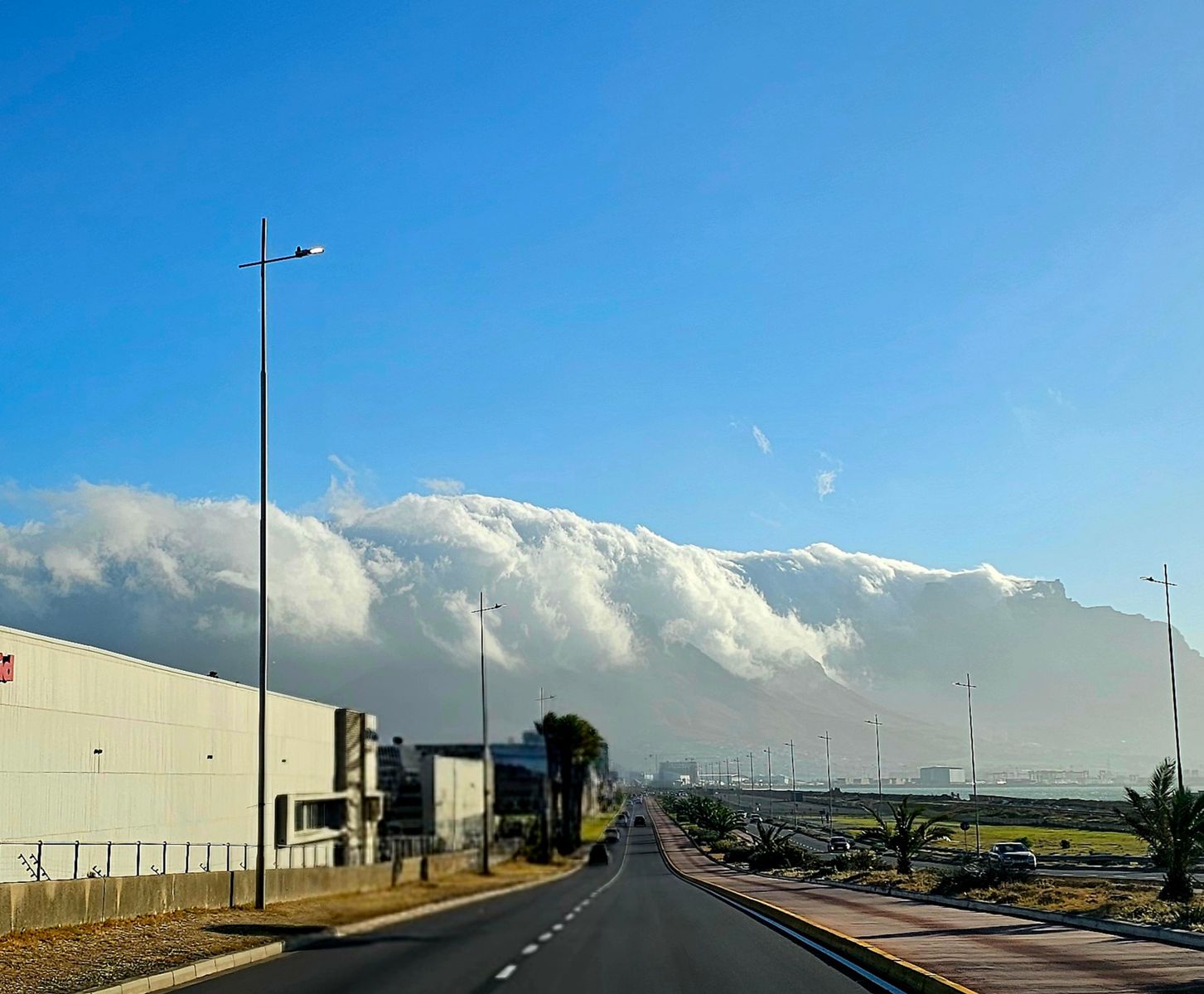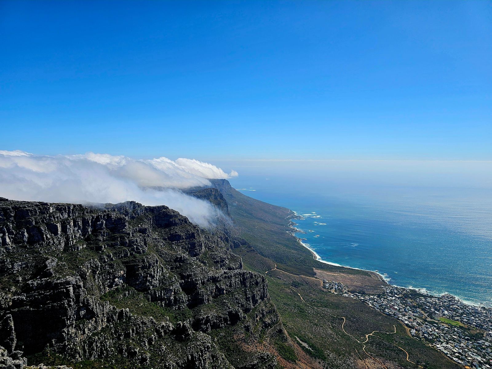 Danach haben wir uns erstmal aufs Ohr gehauen, ehe wir um 18 Uhr nach Mouille Point gefahren sind. Der Tafelberg war ganz in Wolken gehüllt. Das sah schon krass aus: