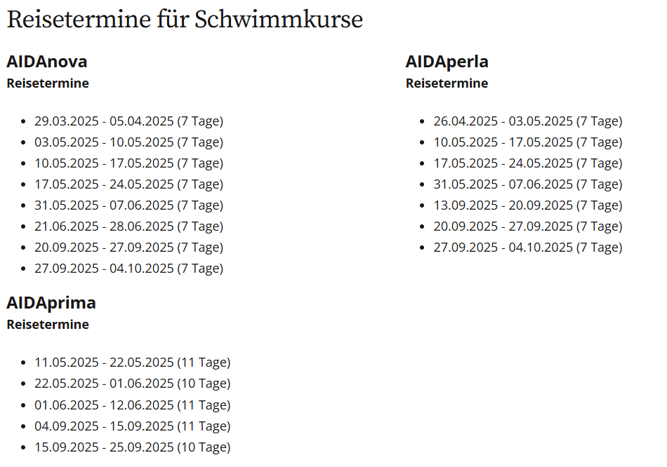 Gibt es noch die Schwimmkurse auf Aida Nova?